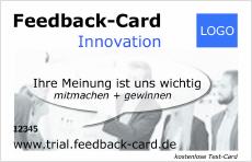 Die Feedback-Card eröffnet eine neue Möglichkeit, Ihren Kunden gezielt zu einer speziellen Themenbefragung oder exklusiv in Ihre Feedback-Lounge zu leiten, in der er durch aktive Integration stärker an Ihre Produkte und Ihr Unternehmen gebunden wird.
